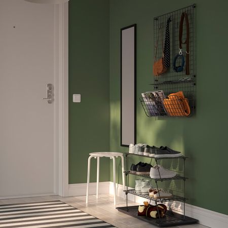 Простое и универсальное решение для хранения с воздушным дизайном — отличный вариант для прихожей и других небольших пространств.