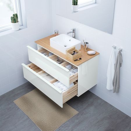 Шкаф для раковины с 2 ящ, глянцевый белый 100x47x58 см IKEA GODMORGON ГОДМОРГОН