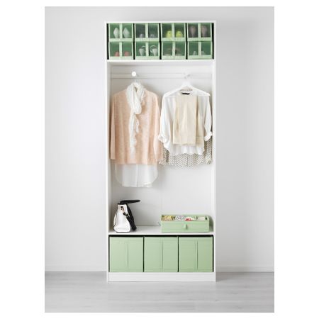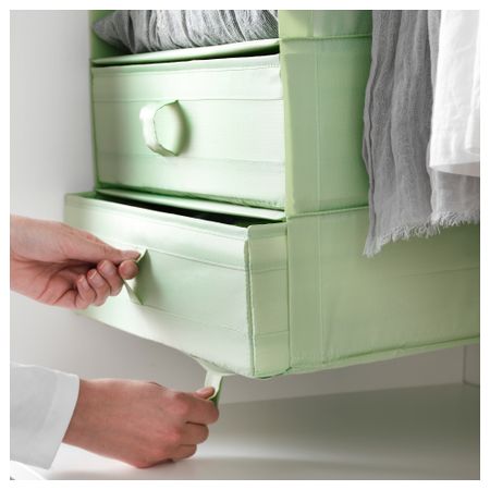 Легко выдвигать благодаря ручке. Все три ящика подходят к каркасу гардероба шириной 100 см. Когда коробка вам не нужна, ее можно сложить. Для этого нужно открыть молнию на дне коробки. Подходит для каркасов гардеробов ПАКС глубиной 35 см. Размер: 31x34x33 см