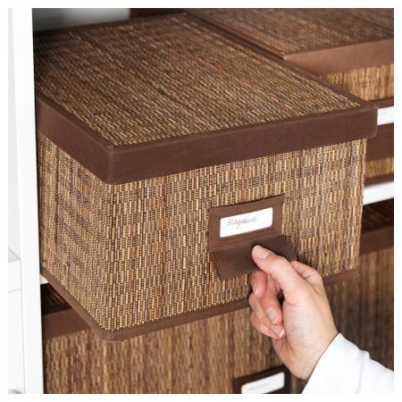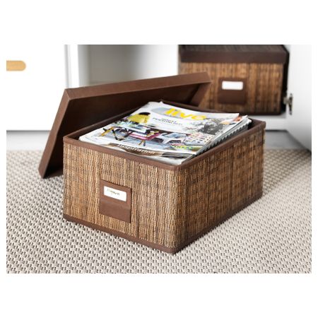 Можно хранить газеты, журналы, фотографии и другие памятные вещи. Используйте прилагаемые ярлыки, чтобы найти нужную вещь было проще. Ширина: 35 см. Глубина: 55 см. Высота: 27 см. Картон, Жилки пальмового листа, Нетканый полипропилен Размер: 35x55x27 см