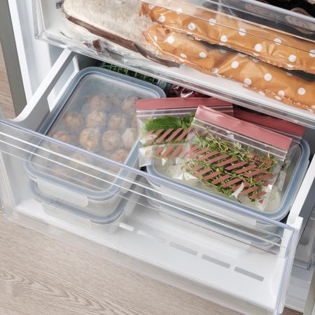 Двойная застежка пакетов ИСТАД дольше сохранит свежесть содержимого и даже предотвратит проливание жидкости. Закрывающийся пакет для многоразового использования можно мыть вручную.