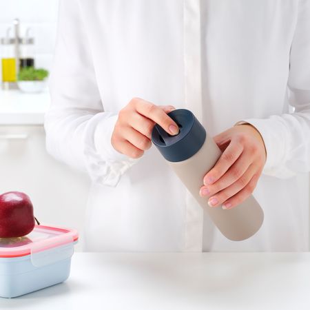 Трубочка и контейнер для протеинового порошка, витаминов или дополнительной порции свежих фруктов прилагаются.Удобно брать с собой на прогулку или в поездку на автомобиле.Контейнер и инфузер можно соединить вместе или использовать отдельно.