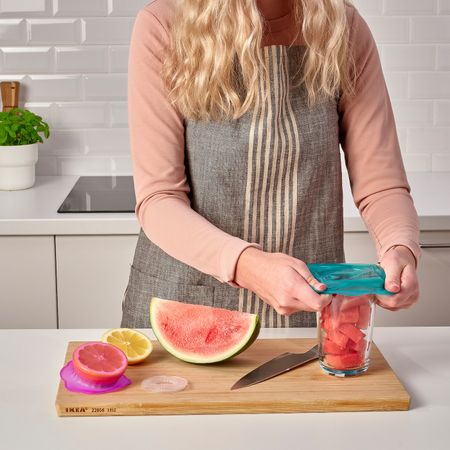 Можно мыть и повторно использовать.Можно использовать в качестве крышек, чтобы сохранить свежесть еды и напитков.Прекрасно подойдет для банок и стеклянных контейнеров, а также свежих овощей и фруктов.Можно мыть в посудомоечной машине.