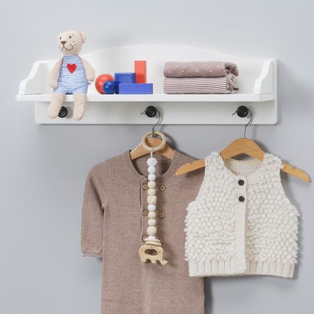 Закрепите вешалку на удобной для ребенка высоте, чтобы он мог самостоятельно доставать вещи и вешать их обратно, поддерживая порядок в своей комнате. Ширина: 60 смГлубина: 17 смВысота: 19 см. ДВП, Акриловая краска