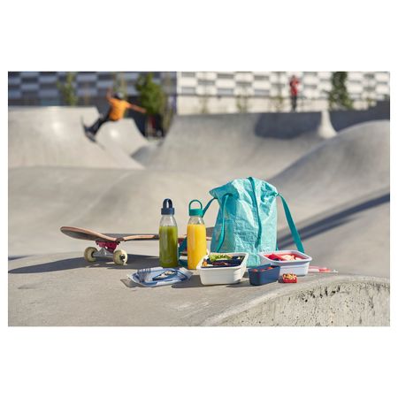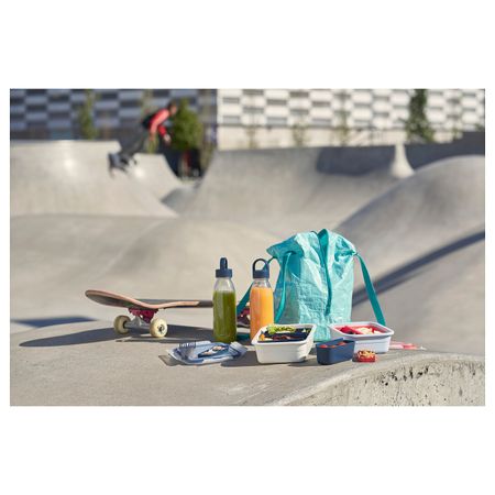 Благодаря длинной молнии сумка открывается полностью, поэтому положить и достать контейнеры будет удобно.Плоское дно сумки обеспечивает устойчивость сумки и содержимого.В сумку можно поставить 2 прямоугольных контейнера ИКЕА 365+, объемом 1 л.