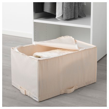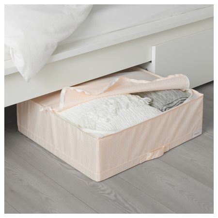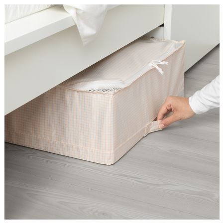 Можно поставить под кровать – отличное решение для хранения постельных принадлежностей. Защищает одежду от пыли. Сетчатые вставки в углах обеспечивают циркуляцию воздуха – вещи дольше остаются свежими. Размер: 55x51x18 см