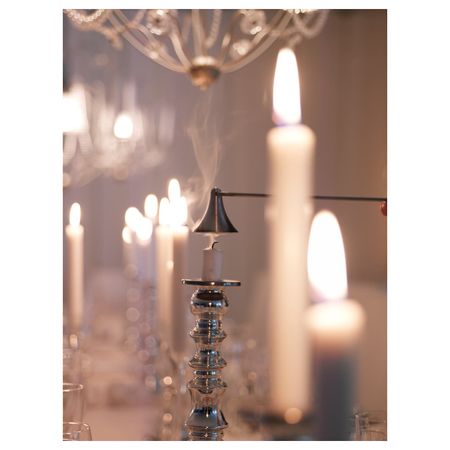 Гасит пламя свечи безопасно – без брызг и гари.Свечной колпачок на шарнирном соединении; одинаково удобно гасить свечи в фонарях и канделябрах.Материал, из которого изготовлено данное изделие, пригоден для переработки.