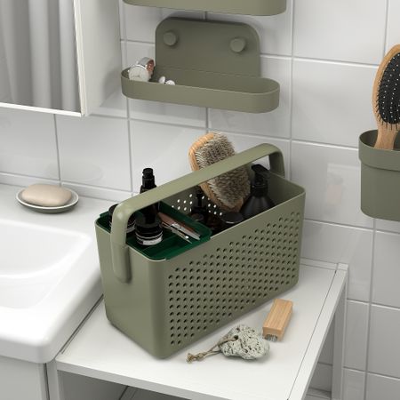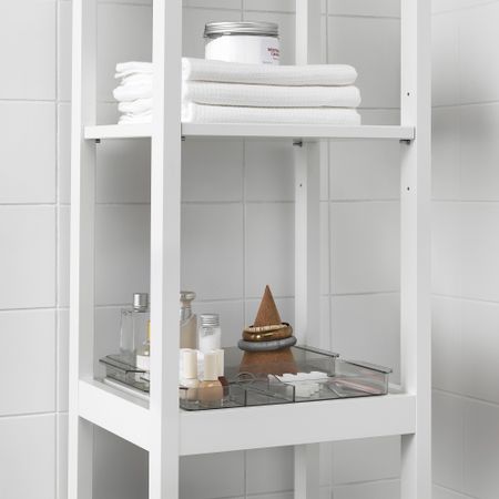 Эта прочная, многофункциональная тележка для ванной пригодится вам и в других уголках дома: на кухне, в комнате для хобби или в домашнем кабинете. Взявшись за удобную ручку, эту корзину легко переносить из комнаты в комнату.