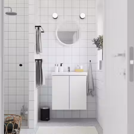 Мебель для ванной ЭНГШЁН выглядит современно и лаконично с минимумом деталей, чтобы каждый день начинался с чистоты.