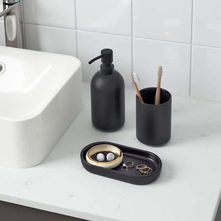 На поднос можно поставить мыльницу или положить украшения и другие мелочи, которые обычно так легко теряются. Легко наполнить вашим любимым мылом. В набор входит: 1 дозатор для жидкого мыла, 490 мл (диам.