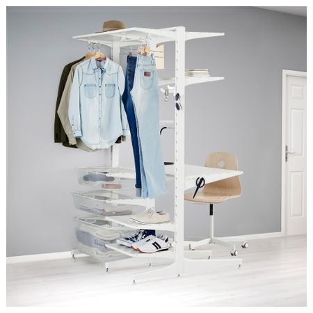 Из предметов серии АЛЬГОТ можно создавать различные комбинации, которые можно в дальнейшем адаптировать к потребностям хранения и возможностям помещения. Комбинацию для хранения АЛЬГОТ легко изменить или дополнить при необходимости. Размер: 107x103x194 см