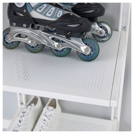 Из предметов серии АЛЬГОТ можно создавать различные комбинации, которые можно в дальнейшем адаптировать к потребностям хранения и возможностям помещения. Шины АЛЬГОТ – основа настенной комбинации для хранения. Размер: 65x41x197 см