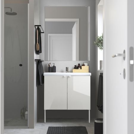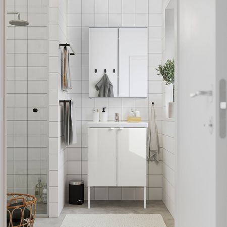 ТВЭЛЛЕН 094.304.30 Шкаф под раковину с 1 дверцей, Йельсен белый/Сальен смеситель 44x43x88 см FISKÅN ФИСКОН / TVÄLLEN
