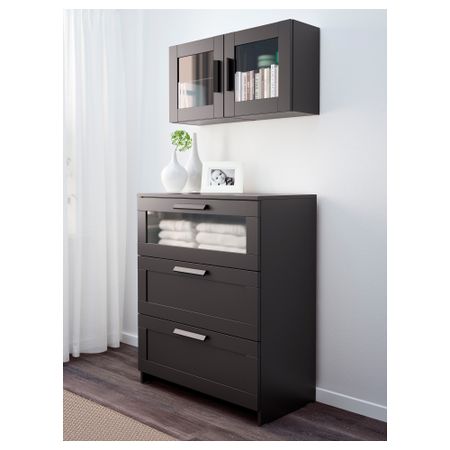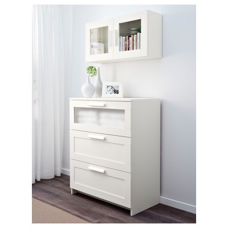 Чтобы ящики не выпадали при открывании, они оснащены специальным стопором. Можно дополнить туалетным столиком БРИМНЭС аналогичной глубины и высоты. Мебель необходимо крепить к стене с помощью прилагаемого крепежа безопасности. Размер: 50x77 см