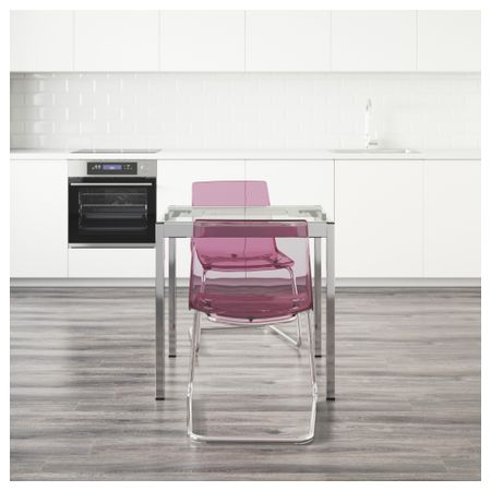 ГЛИВАРП 390.106.73 Стол и 2 стула ГЛИВАРП / ТОБИАС, прозрачный, хромированный сиреневый (75 см)