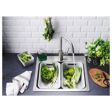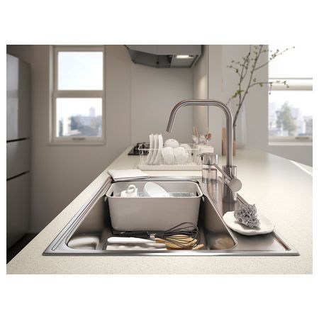 Вставку можно использовать в качестве разделителя, чтобы из одинарной мойки сделать двойную.Используя для мытья посуды эту вставку, вы сократите расход воды. Это гораздо экономичнее, чем мыть посуду под проточной водой.