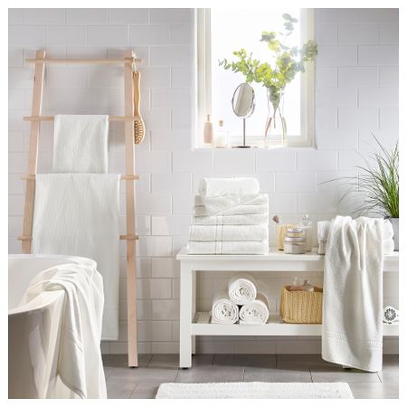 КЭЛВШЁН 402.625.18 Простыня банная, белый, синий (100x150 см)