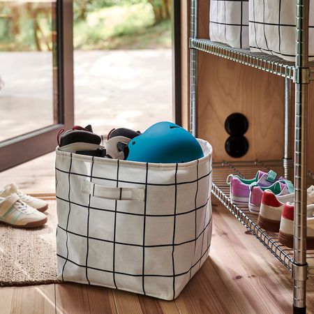 Стильная и функциональная корзина, которая будет хорошо смотреться и на книжной полке, и в гардеробной, и в прихожей.