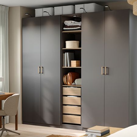 Проволочные корзины, полки и место для вешалок, спрятанные за двумя дверцами — это практичное и гибкое решение, которое можно дополнять аксессуарами ALTARLIDEN и адаптировать по мере взросления ребёнка.