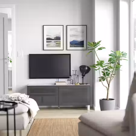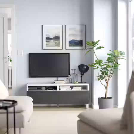 Тумба для телевизора БЕСТО может использоваться для телевизора и всех необходимых гаджетов.