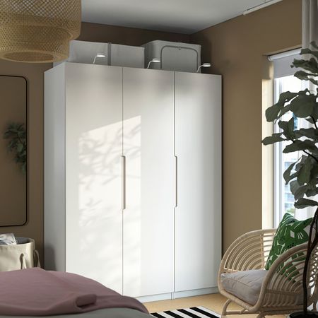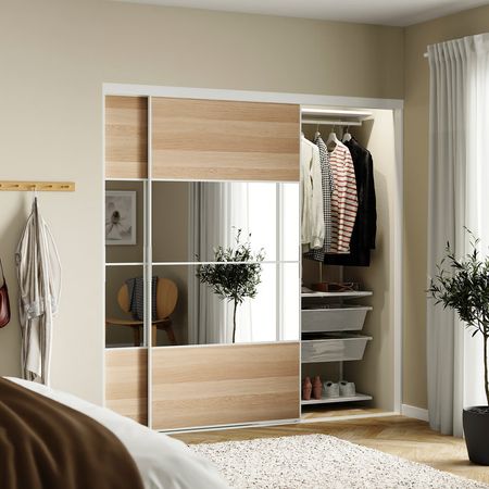 Белые стеклянные двери будут уместны для каркаса гардероба любого цвета.