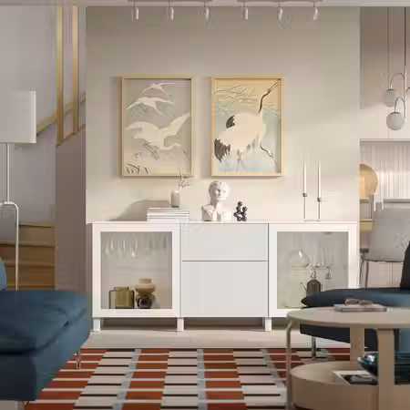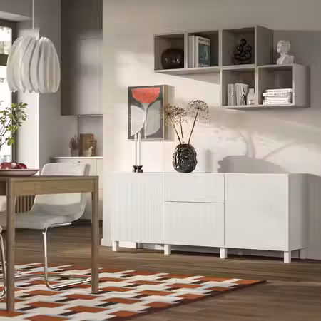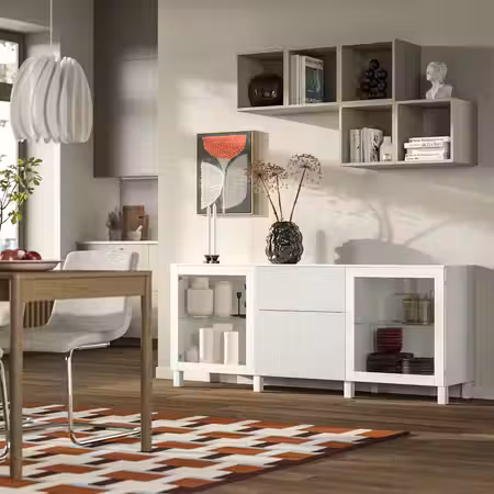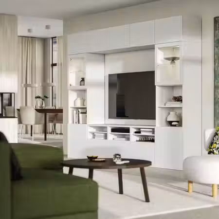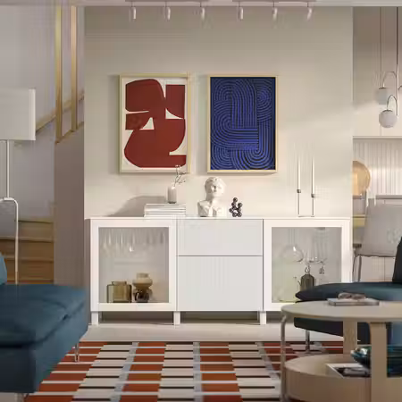 Тумба для телевизора БЕСТО может использоваться для телевизора и всех необходимых гаджетов.