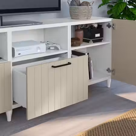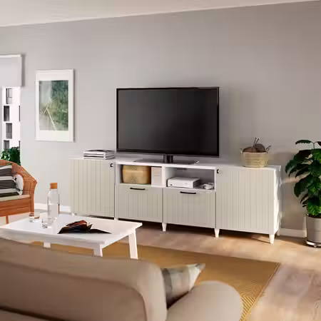 Тумба для телевизора БЕСТО может использоваться для телевизора и всех необходимых гаджетов.