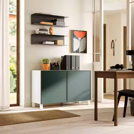 BESTÅ 695.973.75 Тумба под ТВ, с дверцами - белый/Krukmakare темный серо-зеленый 120x42x74 см