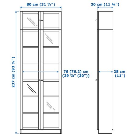 Съемные полки; устанавливайте на разном уровне в соответствии с необходимостью. Отделка из шпона. Для разных стен требуются различные крепежные приспособления. Подберите подходящие для ваших стен шурупы, дюбели, саморезы и т. п. (не прилагаются). Размер: 200x28x202 см