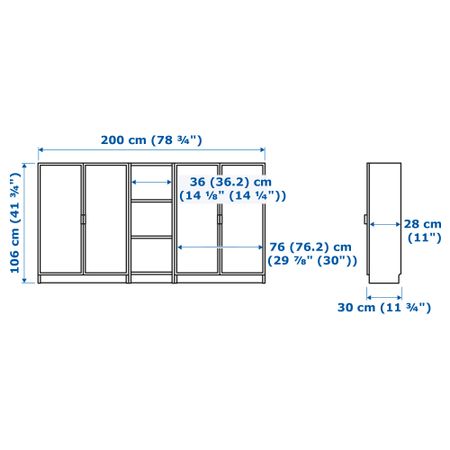 Съемные полки; устанавливайте на разном уровне в соответствии с необходимостью. Модуль может использоваться для организации хранения в небольшом помещении или станет основой для большей комбинации, если Ваши потребности в хранении изменились. Размер: 200x106x30 см