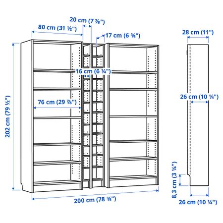Съемные полки; устанавливайте на разном уровне в соответствии с необходимостью. Отделка из шпона. Подсчитано, что каждые пять секунд в одном из магазинов ИКЕА продается стеллаж БИЛЛИ.