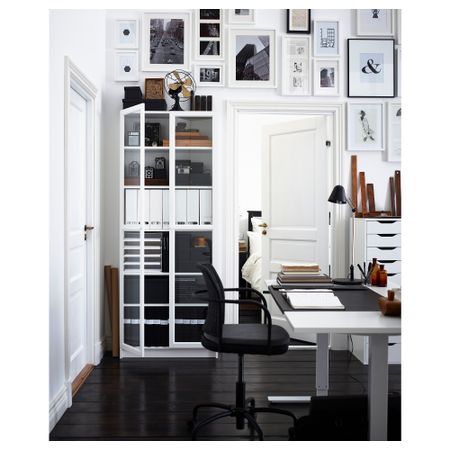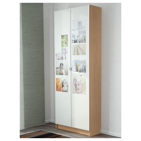 Съемные полки; устанавливайте на разном уровне в соответствии с необходимостью. Отделка из шпона. Создайте собственный дизайн дверцы, вставив фотографию или ткань между стеклом и панелью. Размер: 80x202x30 см
