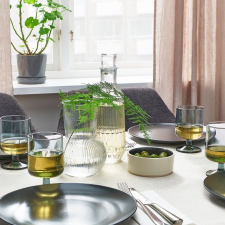 Идеально подходят для вина, но позволяют элегантно подать также и другие напитки. Подойдет для сервировки стола по торжественным поводам — на юбилей или свадьбу — и для повседневного использования в кругу семьи.