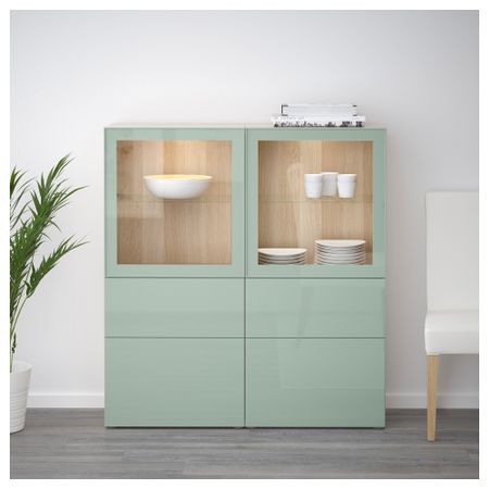 Благодаря доводчикам ящики и дверцы закрываются плавно и бесшумно. Стеклянные дверцы обеспечивают обзор содержимого, защищая его от пыли. Съемные полки позволяют регулировать внутреннее пространство в соответствии с потребностями хранения. Размер: 120x40x128 см