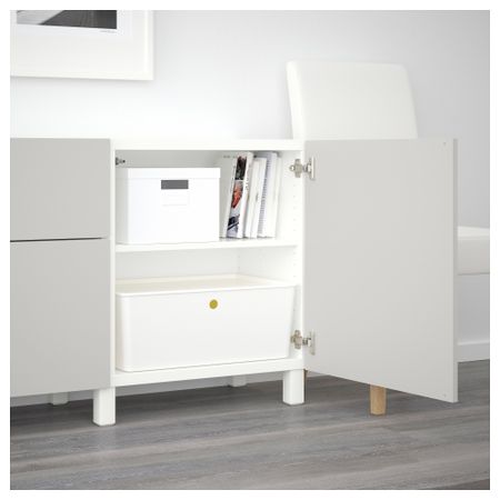 Благодаря интегрированному нажимному механизму ящики и дверцы открываются легким нажатием. Ножки придают комбинации БЕСТО более легкий вид, поднимая модули на полом. Кроме того, это упрощает уборку. Размер: 180x40x74 см