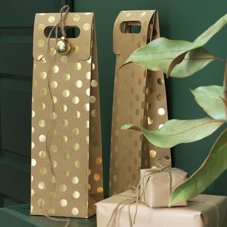 VINTER 104.742.82 Подарочная упаковка для бутылки, орнамент «точки» коричневый/золотистый 13x41 см 2020 ВИНТЕР 2020