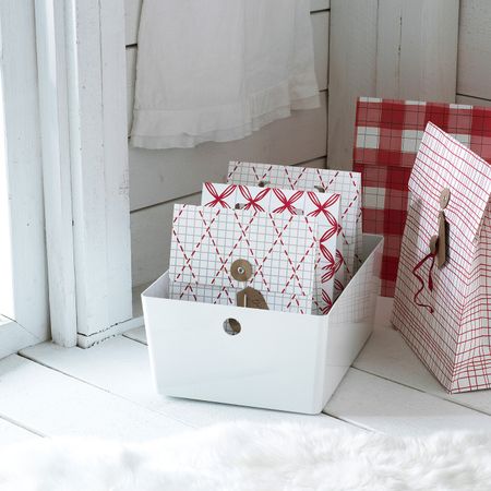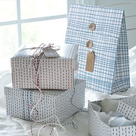 Подарочная коробка поможет легко и быстро упаковать подарок неправильной формы. Чтобы придать подарочной коробке более индивидуальный вид, можно использовать тесьму, декоративные аксессуары и наклейки. Дизайнер Synnöve Mork.
