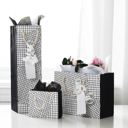 Это пакет подходящего размера для большой бутылки вина или других подарков. Если вы хотите сделать оформление подарка более индивидуальным, украсьте его подходящей тесьмой и декоративными аксессуарами.