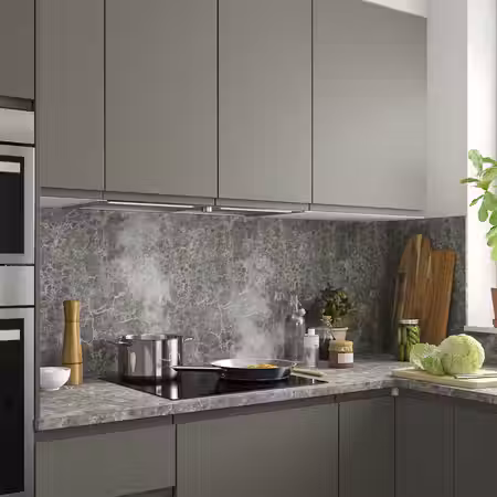 Эта мощная вытяжка устанавливается в шкаф шириной 80 см — просто выберите дверцы, подходящие к фасадам имеющегося гарнитура.