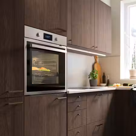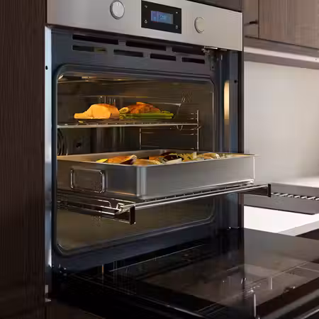 У этой духовки с функцией самоочистки есть множество полезных режимов: она подходит для приготовления разных блюд.