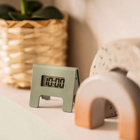 Компактный будильник КУПОН серо-зеленого цвета удобно поставить на прикроватную тумбочку и взять с собой в поездку. Громкость сигнала увеличивается в 4 этапа за 2 минуты, если вы не проснетесь и не отключите будильник.