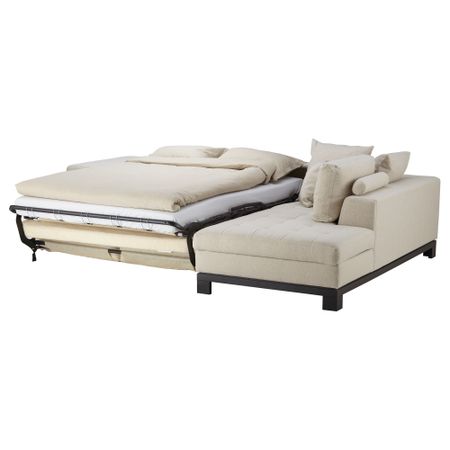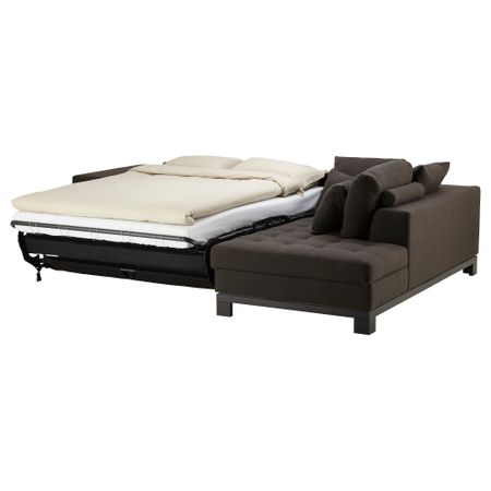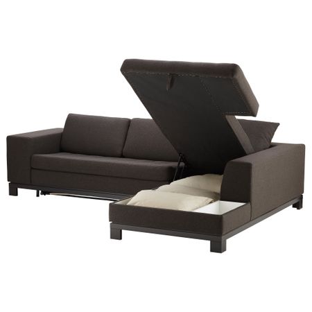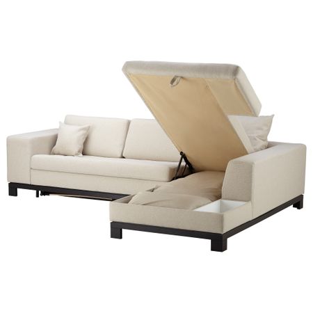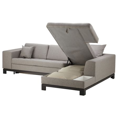 Легко превращается в двуспальную кровать. Подходит для ежедневного использования. Спинная подушка остается на месте благодаря молнии. Козетка с отделением для хранения.