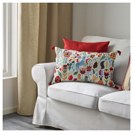Чехол на подушку с разным рисунком с каждой стороны. Чехол на подушку изготовлен из волокна рами; прочный натуральный материал со слегка неравномерной фактурой. Благодаря завязкам чехол легко снять. Подходит для подушек 65x65 см. Длина: 65 см. Размер: 65x65 см