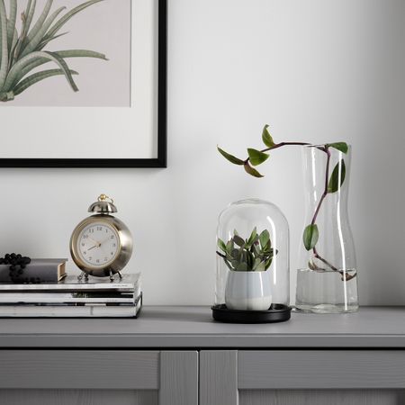 Стеклянный клош на подставке можно использовать для демонстрации ваших любимых декоративных предметов.