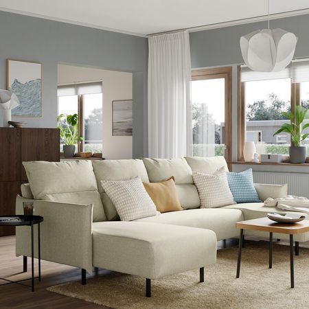 Наша любимая мягкая мебель ЭКТОРП с комфортными подушками отличается нестареющим дизайном.