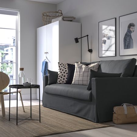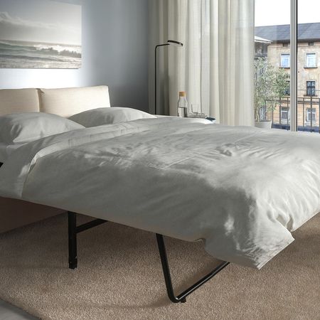 С дивана-кровати BÅRSLÖV с большими удобными подушками просто не хочется вставать. На нём можно общаться с друзьями, отдыхать или спать, а внутри даже есть практичный отсек для хранения. За тканью легко ухаживать, так что диван прослужит