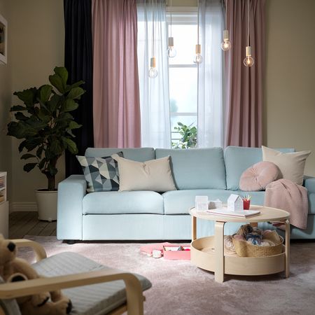 На мягком, комфортном диване ГРЁНЛИД так приятно полностью расслабиться. Уровень комфорта еще выше благодаря глубоким сиденьям с пружинами карманного типа, наполнителем из пенополиуретана и верхним слоем из волокон полиэстера.