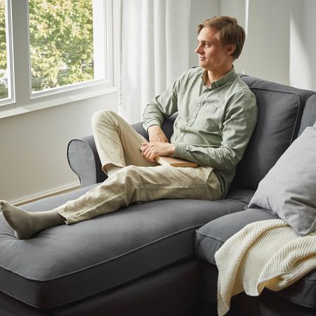 На мягком, комфортном диване ГРЁНЛИД так приятно полностью расслабиться. Уровень комфорта еще выше благодаря глубоким сиденьям с пружинами карманного типа, наполнителем из пенополиуретана и верхним слоем из волокон полиэстера.