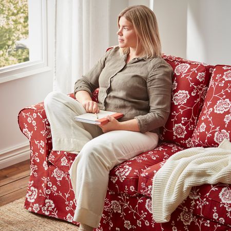 Чехол изготовлен из хлопковой ткани Инсерос с полотняным переплетением и гладкой фактурой. Съемный чехол можно стирать в машине. Новый чехол — отличный способ продлить жизнь вашей любимой мебели и заодно освежить интерьер дома.