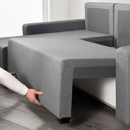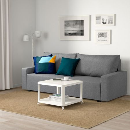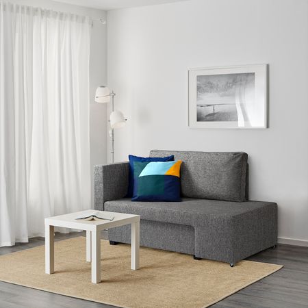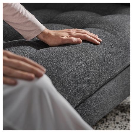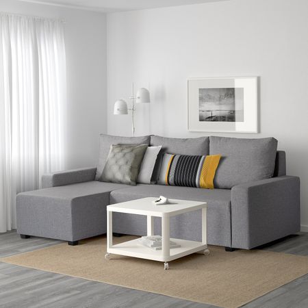 Прекрасно смотрится со всех сторон — можно поставить в середине комнаты.Во вместительном отделении под сиденьем удобно хранить, например, постельное белье.Высокие ножки упрощают уборку под диваном.
